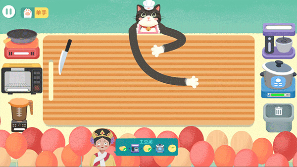 5、烹饪操作高度拟真,切菜、搅拌、下锅等步骤均需手动完成,猫爪灵活翻飞,体验紧张又治愈的后厨乐趣。