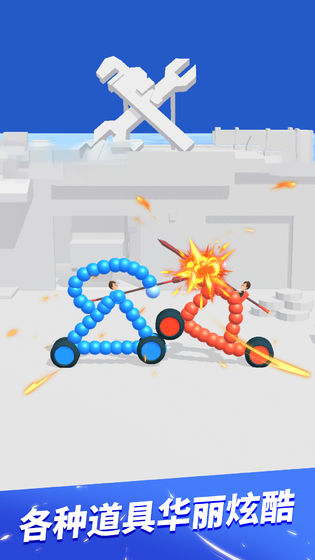 3、构筑好专属战车后,玩家可以参与双人对决,依托地形调整冲撞节奏,逐步击溃对手并拿下胜利。