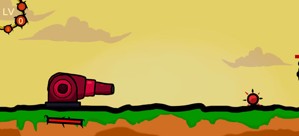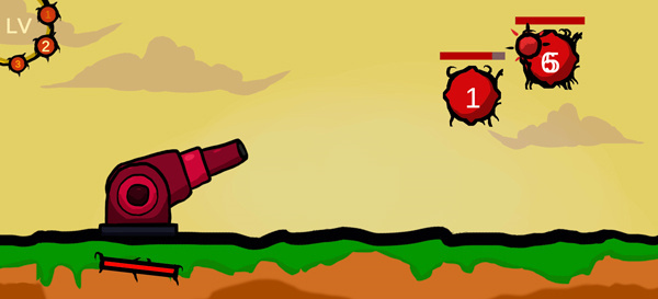 1、踏入【LV-4】关卡,操控红色大炮,精心调整发射角度,准备迎击来袭的敌人。
