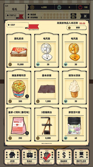 4、特色猫咪打工系统,猫咪会消耗体力自动赚取金币,玩家可轻松积累资源,用于装饰房间,养成乐趣十足。