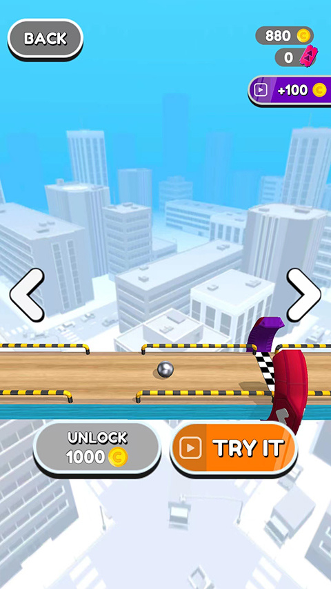 3、操控铁球收集路径上的【金币】,积累货币以解锁更多游戏道具,增强游戏体验。