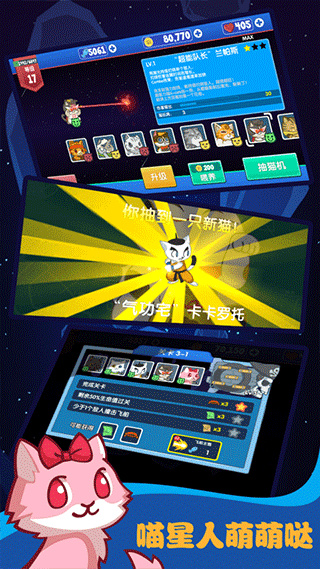 5、支持战队自由搭配策略,不同飞船、猫咪组合效果不同,玩家可自由研发最强闯关阵容。