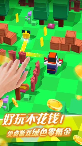 2、对局初期,不妨沿着【金币】的刷新路径前行,这样既能收集资源,又能有效规避路边的树木、栅栏等障碍,让你的冒险之路更加顺畅。