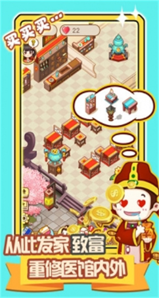 3、医馆经营:玩家需要对医馆进行全面管理,包括招募学徒、购置药材、合理设定诊疗费用等,以此赚取收益并逐步扩大医馆规模。