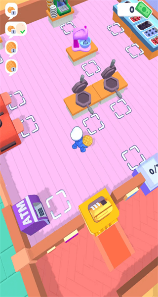 3、接着,操控角色将加工好的半成品移动至指定操作区域,并将其递交给对应的顾客,满足他们的面包需求。