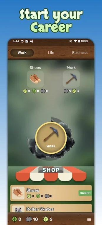 1、首先查看游戏界面中的物品,找到已拥有的鞋子,确认其状态后,利用对应的工作按钮开启工作。