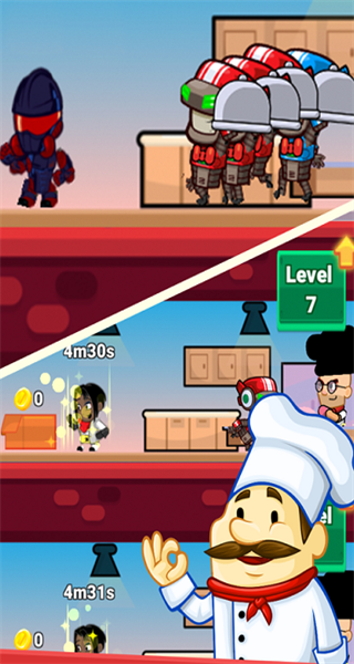 2、支持放置挂机:游戏具备放置挂机功能,即便玩家离线,餐厅也能自动运营并赚取收益,让玩家轻松享受游戏乐趣。
