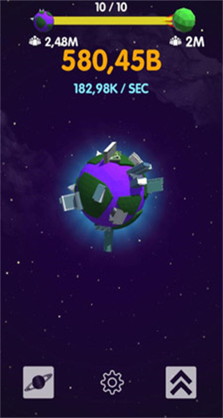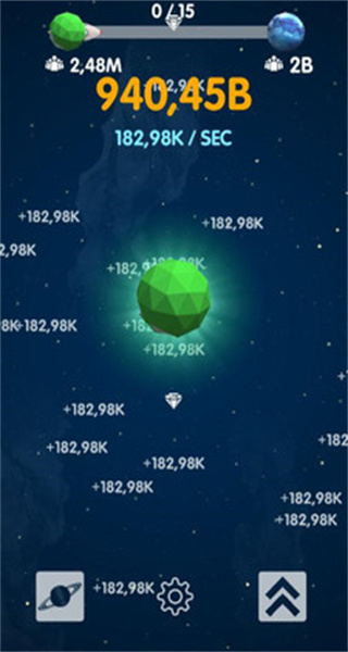 1、踏入游戏世界后,只需轻触界面中的星球区域,即可触发收益增长机制。随着界面数值的逐步攀升,玩家将积累起宝贵的初始资源。