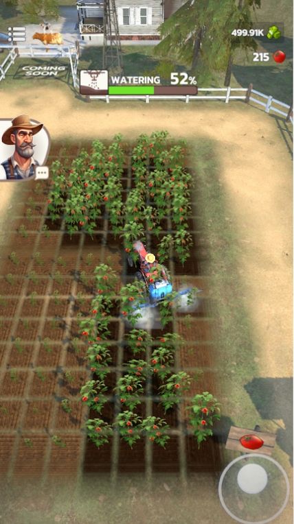 4、继续操控农机,对田地里的作物进行浇灌,提升作物生长状态,加速作物成熟。