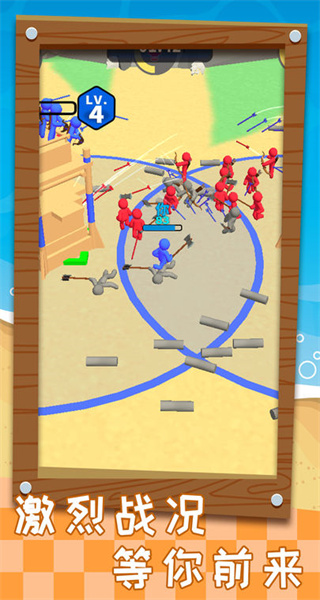 1、进入游戏后,迅速收集场景内的木块,并将它们搬运至指定的围栏区域,逐步搭建起坚固的建筑结构,为后续的对战做好充分准备。
