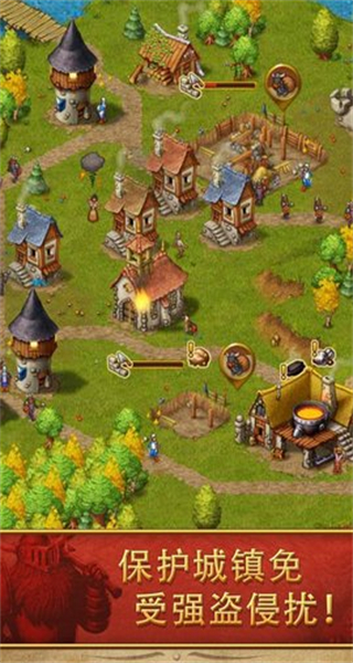 2、动态安全系统:土匪劫掠事件随机触发,配套兵营与守卫塔构成完整防御体系